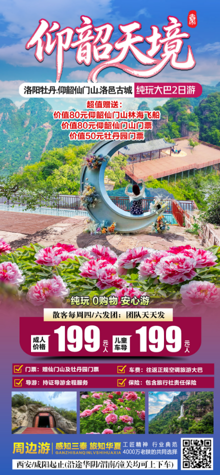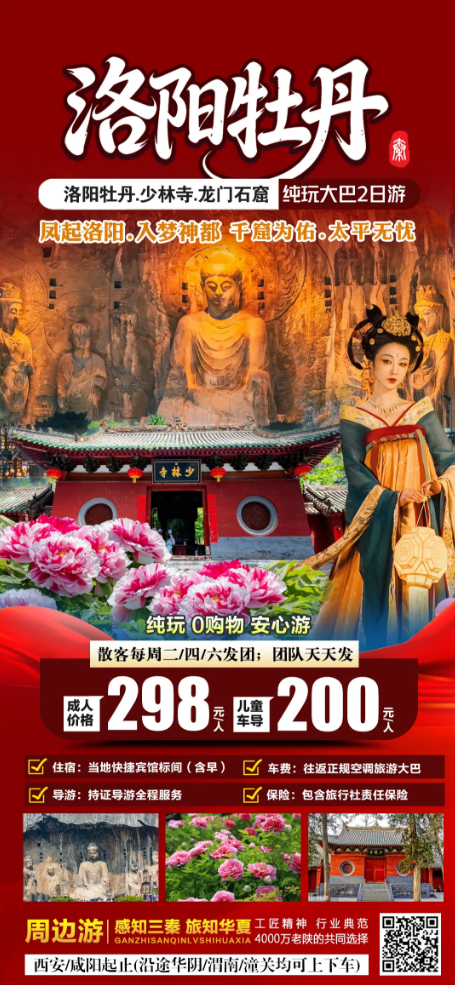 洛阳牡丹.仰韶仙门山.洛邑古城二日游(不分大小,每周四/六发团) 提前一天预定 (不可退)