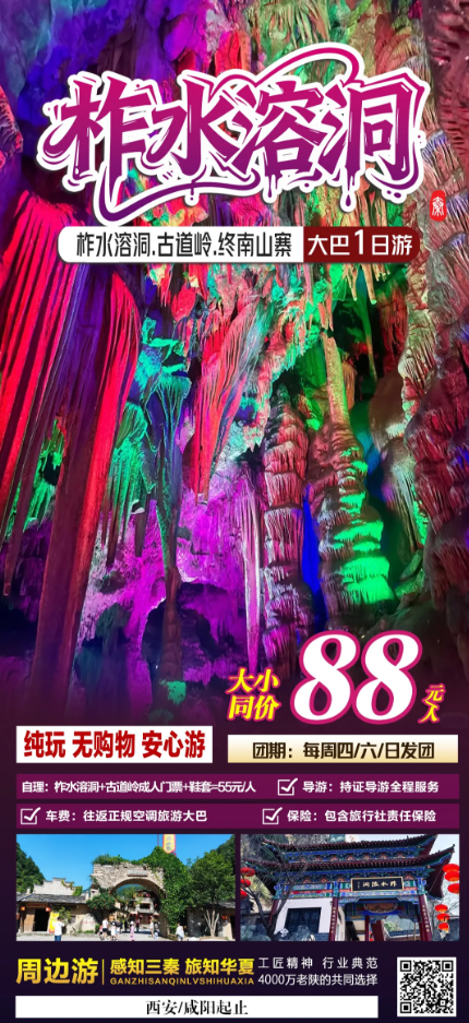 柞水溶洞.古道岭.终南山寨一日游(周四/六发) 提前一天预定 (不可退)